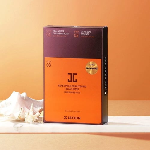 | Ingredients | STEP 01 Real Water Cleansing Foam Water, Palmitic Acid, Glycerin, Potassium Hydroxide, Stearic Acid, Lauric Acid, Myristic Acid, Beeswax, Glyceryl Stearate, PEG-100 Stearate, Glycol Distearate, Cocamidopropyl Betaine, Sorbitan Olivate, Sodium Hyaluronate, Sea Water, Carica Papaya (Papaya) Fruit Extract, Propylene Glycol, Hydroxyethylcellulose, Butylene Glycol, 1,2-Hexanediol, Ethylhexylglycerin, Sodium Chloride, Disodium EDTA, Chlorphenesin, Phenoxyethanol, Fragrance, Limonene STEP 02 Vita Snow Essence Water, Methylpropanediol, Glycerin, Niacinamide (20,035 ppm), Sea Water, Sodium Hyaluronate, Illicium Verum (Anise) Fruit Extract, Allantoin, Betaine, Beta-Glucan, Sodium Ascorbyl Phosphate (7 ppm), Pyridoxine HCl (3 ppm), Tocopheryl Acetate (3 ppm), Hydroxyethyl Urea, 1,2-Hexanediol, Butylene Glycol, Caprylyl Glycol, Carbomer, Tromethamine, Glyceryl Polyacrylate, PEG-60 Hydrogenated Castor Oil, Adenosine, Sodium Starch Octenylsuccinate, Calcium Pantothenate (15 ppm), Maltodextrin, Ethylhexylglycerin, Silica, Disodium EDTA, Phenoxyethanol, Fragrance, Limonene STEP 03 Real Water Brightening Black Mask Sheet Water, Methylpropanediol, Glycerin, 1,2-Hexanediol, Niacinamide, Sea Water, Sodium Hyaluronate, Betaine, Allantoin, Ceramide NP, Beta-Glucan, Hydroxyethyl Urea, Butylene Glycol, Carbomer, Tromethamine, PEG-60 Hydrogenated Castor Oil, Adenosine, Caprylic/Capric Triglyceride, Diethoxyethyl Succinate, Hydrogenated Lecithin, Phospholipids, Ethylhexylglycerin, Disodium EDTA, Phenoxyethanol, Fragrance, Limonene |